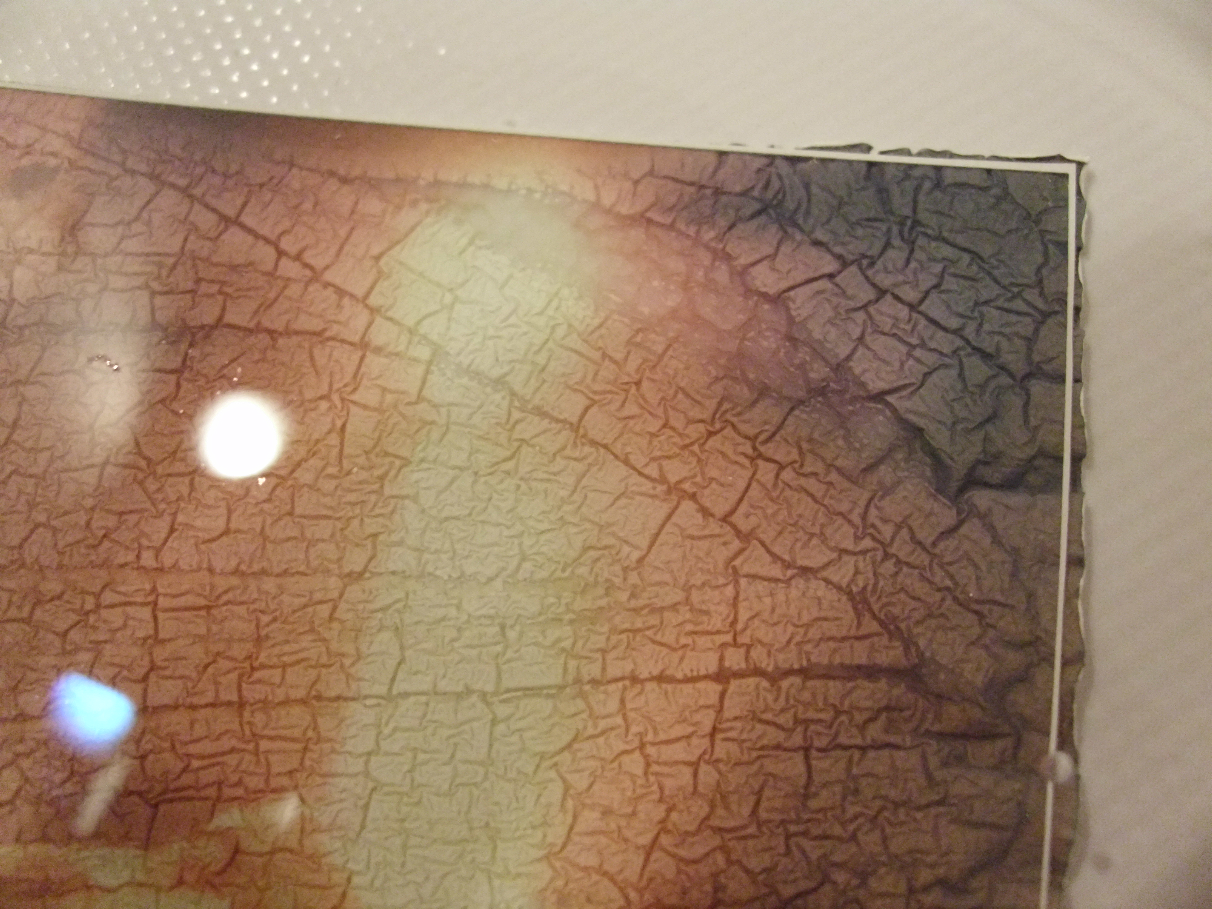 Tiriamo su il foglio con la foto prudentemente, facendo scolare via l’acqua in eccesso.