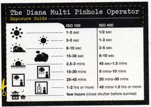 Si tratta della versione pinholica della famosa Diana F+. Come molti di voi già sapranno, anche la Diana F+ è dotata di foro stenopeico. Basta semplicemente togliere l’obiettivo e mettere l’otturatore in posa B, lasciandolo aperto il tempo necessario a impressionare la pellicola.