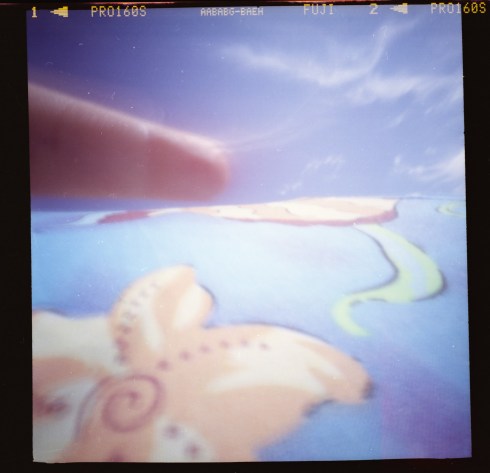 Anche se non sono un granchè, in queste foto potete osservare meglio le foto con due o tre pinhole e l’uso dei filtrini colorati. Dato che la pellicola 35mm non è dotata della carta protettiva come il 120, ricordatevi di chiudere per bene la finestrella del contapose con del nastro isolante, mettendolo sia all’interno che all’esterno del dorso. Purtroppo, io non l’ho fatto a dovere e in alcune foto (specie in quella degli anfibi) si vede una macchia rossa proprio al centro.