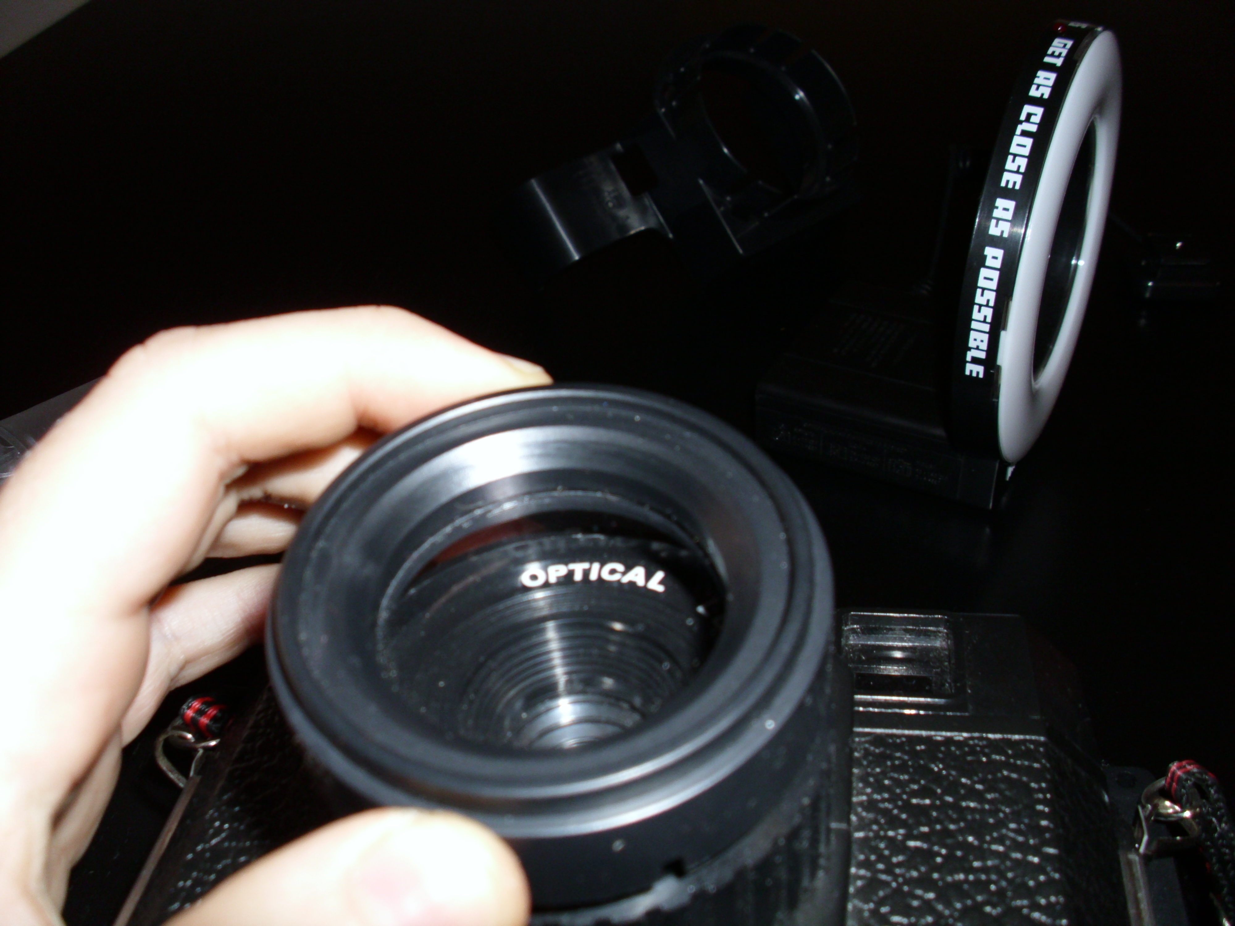 Stuzzicata da questa fulminante idea, ho subito montato il dorso instant sulla mia Holga 120 GN. Oltre al dorso, è necessario montare sia la mascherina interna che la lente che corregge la focale della Holga. Con somma gioia, ho notato che sia le macro che le close-up si incastrano perfettamente su questa lente.