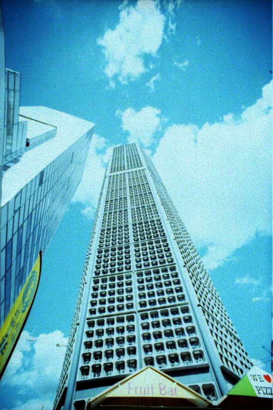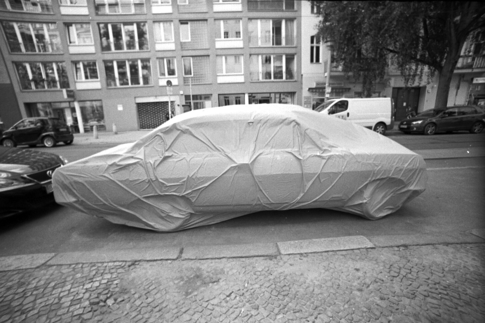 Ho scelto queste foto per far vedere l’effetto della lente “Minigon” (così la chiamano). Come aveva già detto il buon Mijonju, la Minigon è molto più wide rispetto a quello che si vede dal mirino, per cui comporre una foto – a volte – può essere complicato. La difficoltà di questa macchina credo stia tutta qui, perché per il resto è davvero semplicissima da utilizzare, con la messa a fuoco da 40 a 90 cm e da 90cm a infinito e l’esposizione automatica. La foto di Alexander Platz, ad esempio, l’ho composta puntando la scritta e fregandomene del fatto che dal mirino tagliavo la “A” e la “Z” finale. Lo stesso ho fatto con la macchina parcheggiata con il telo.