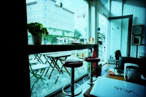 La foto in interni con i due sgabelli l’ho fatta in questo Cafè, da cui mi connettevo sempre. Il gestore è un fotografo che espone i suoi bellissimi scatti e la “versione 3D”, ovvero diapositive scattate in stereo e montate su visori stereoscopici, che creano un interessante effetto tridimensionale. Beh, è stata una gran bella scoperta fatta per caso!