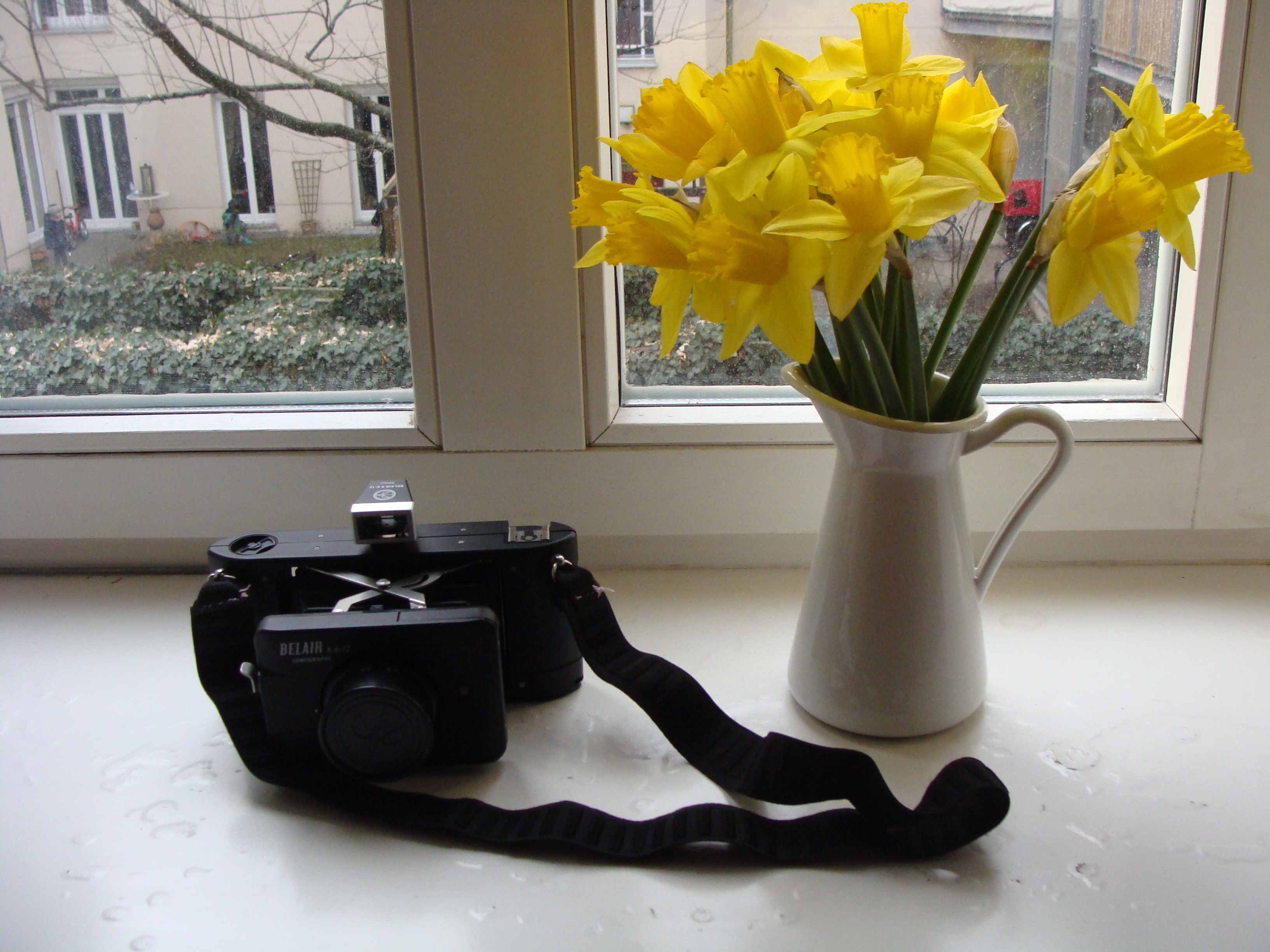 Per la mia Belair, ho comprato un nastro elasticizzato. Dato che è una macchina piuttosto leggera ma decisamente ingombrante, la tracolla è il modo migliore per portarla sempre con sé, specialmente se si viaggia in pieno inverno e le mani devono stare in tasca per non congelare. Et voilà, ecco il risultato, che vi avevo già mostrato su Fb: