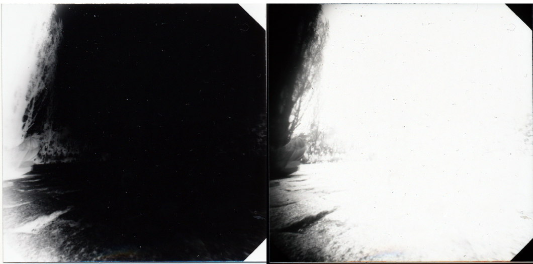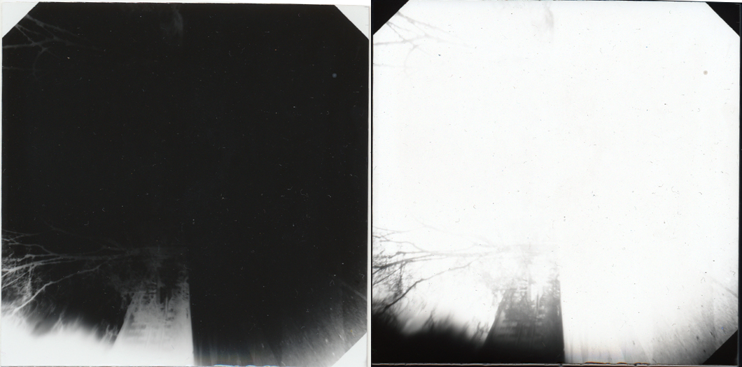 Questi sono i risultati, un po’ sbruciacchiati, devo dire. A mia discolpa, il pinhole della Sténoflex è piuttosto approssimativo, sto meditando di sostituirlo con un altro, ricavato da una lattina. O forse ho esagerato un po’ visto che le nuvole passavano in continuazione sopra il sole e avevo un po’ le idee confuse. Tuttavia, sono molto soddisfatta e ho imparato molto. Quella a destra è la foto negativa, a sinistra la versione in positivo ricavata con Photoshop.