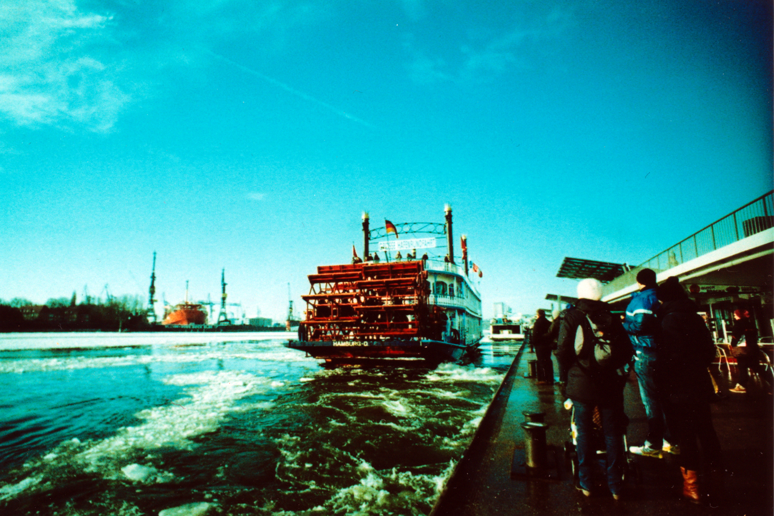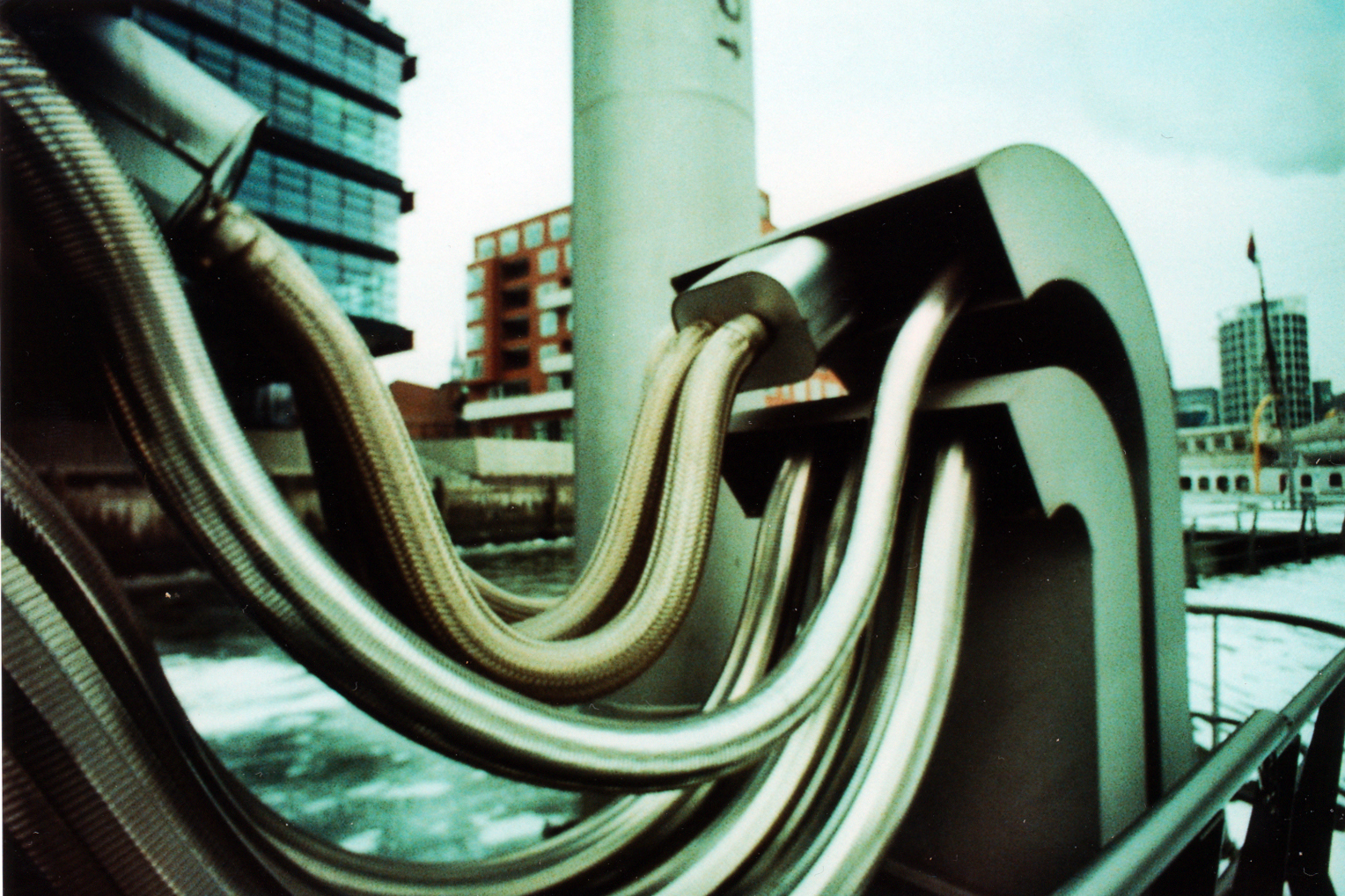 Se capitate dalle parti di Amburgo, dovete sapere che con lo stesso biglietto della metro, potete prendere un traghetto che vi fa fare un piccolo tour panoramico sul fiume ed è sicuramente il modo migliore ed economico per godersi il paesaggio nordico. Appena salita, nonostante il freddo, ho cominciato a scattare a raffica visto il digiuno dei giorni precedenti, con la mia (immancabile) Holga, la LC-Wide, la Sprocket Rocket e la Polaroid 320. Quello che ho riportato a casa non è niente di speciale, sono venute le solite cartoline lo-fi. Mi spiace che i soggetti siano sempre gli stessi e che non rendano in pieno una città stupenda come Amburgo.