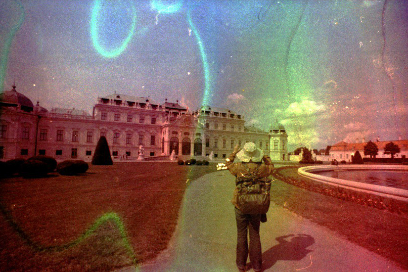 Ecco, meglio interrompere il pippone e mostrarvi questi sprazzi di una Vienna in lo-fi un po’ strana, scattata su un rullino molto particolare, unico nel suo genere. Si tratta, infatti, di un graditissimo regalo da parte di Federica detta Fea, che ha lavato per me una pellicola in lavastoviglie. In gergo, si chiamano “dishwashed film” e non sono nient’altro che delle normalissime negative a colori messe in lavastoviglie e poi fatte asciugare. Il risultato? Colori alterati e sbiaditi per un effetto totalmente imprevedibile.